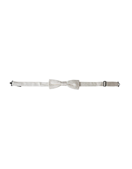 Dolce & Gabbana White Silk Patterned Adjustable Neck Men Papillon Bow Tie