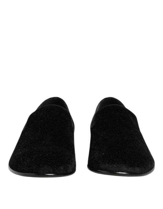 Dolce & Gabbana Black Velvet Slip On Loafers Men Formal Shoes