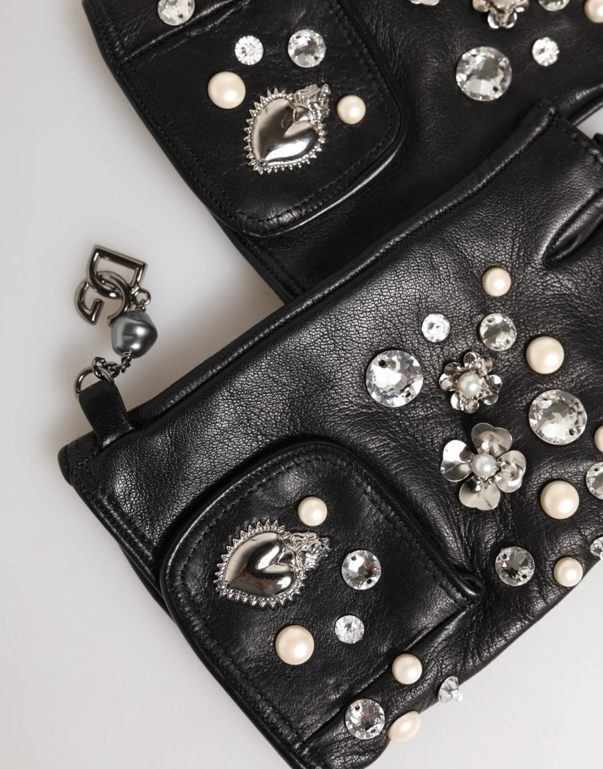 Gloves Black Embellished Wrist Length Mitten — Sophisticated and chic, these black wrist-length mittens are adorned with elegant embellishments that add a touch of glamour. Expertly crafted, they reflect DOLCE & GABBANA’s signature blend of luxury, style, and Italian craftsmanship.