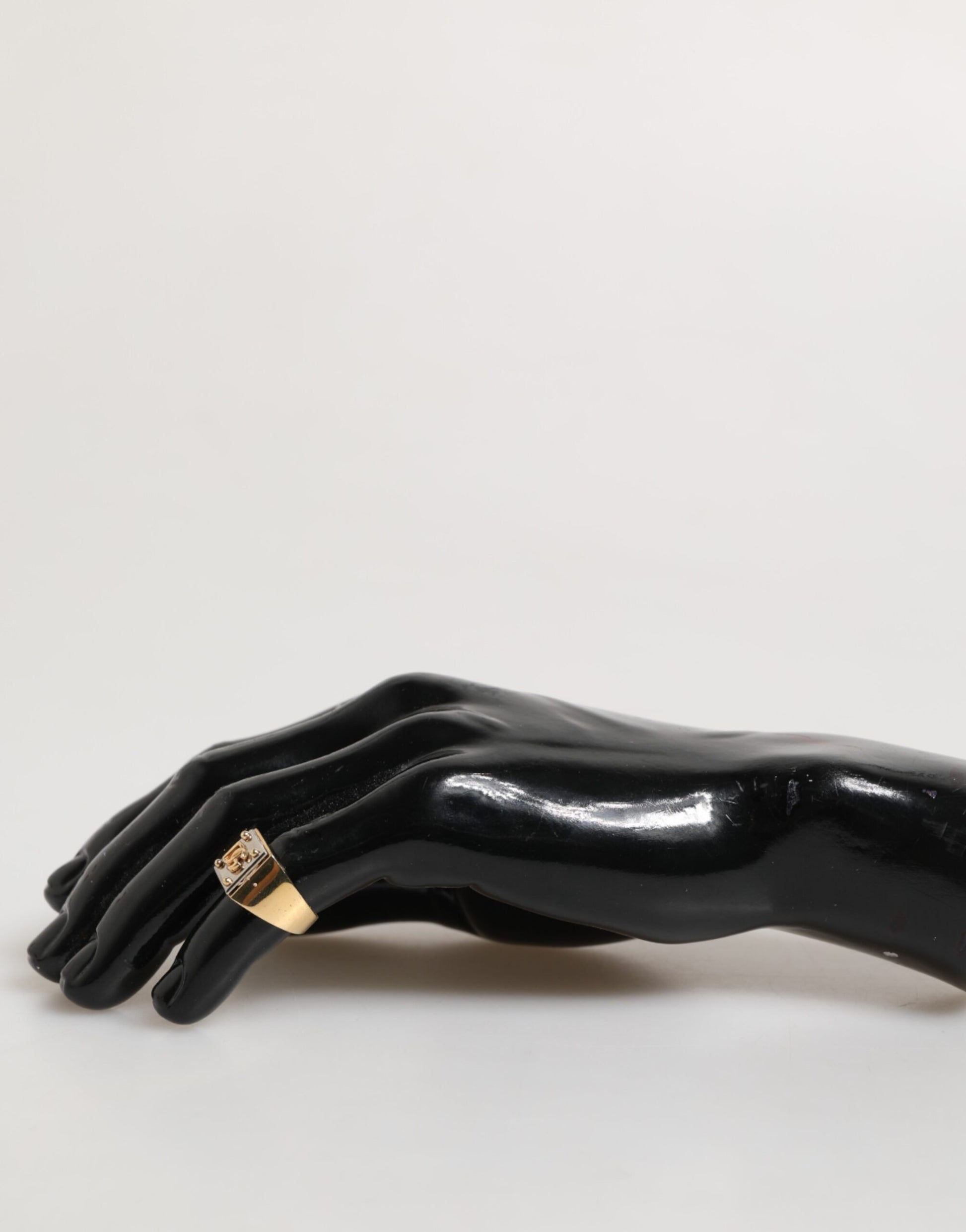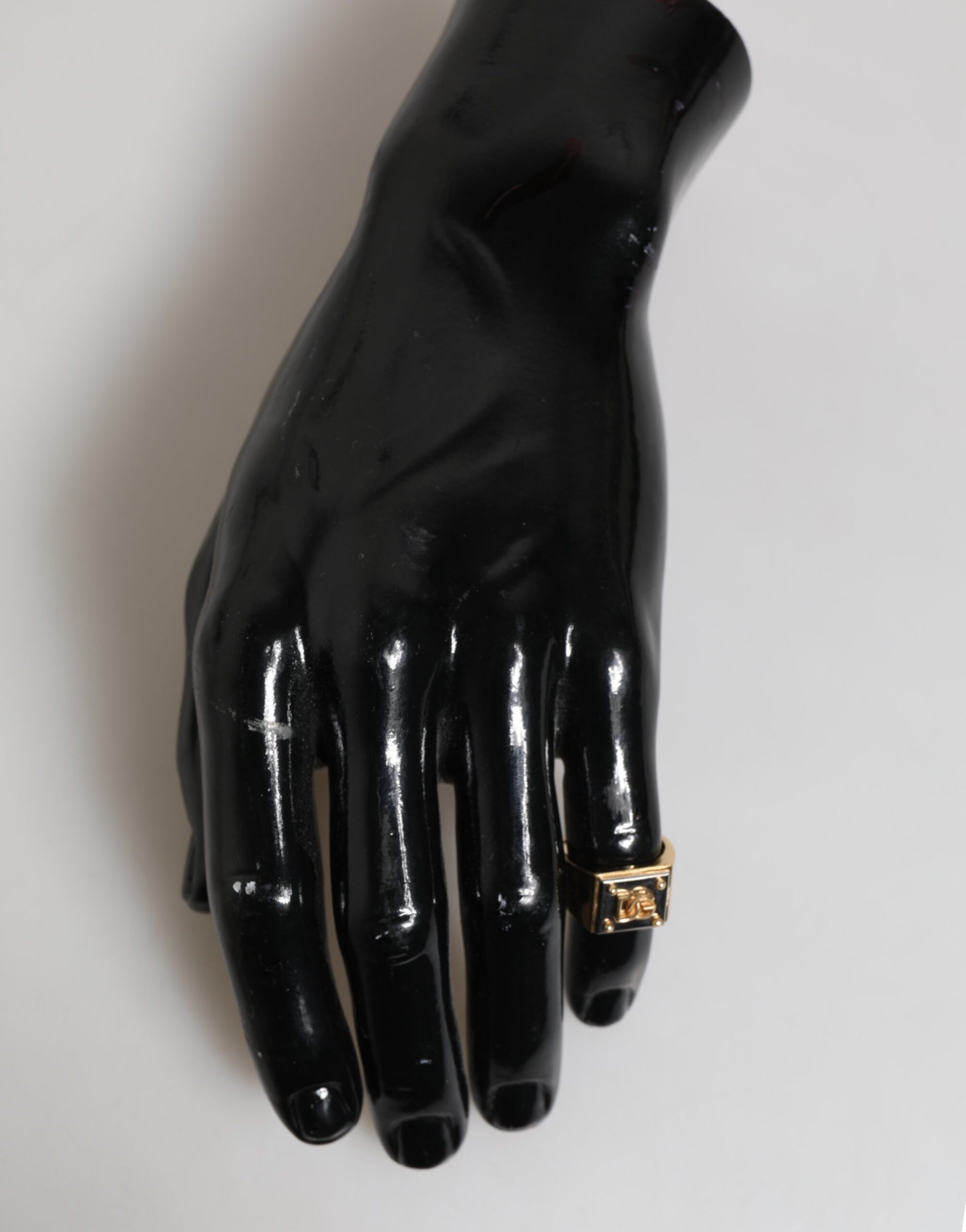 Gorgeous brand new, 100% Authentic Dolce & Gabbana signet ring, featuring a square face with raised DG logo and stud-style corner details. The gold-tone finish combined with a high-polish black backdrop creates a standout contrast that embodies luxury and confidence.