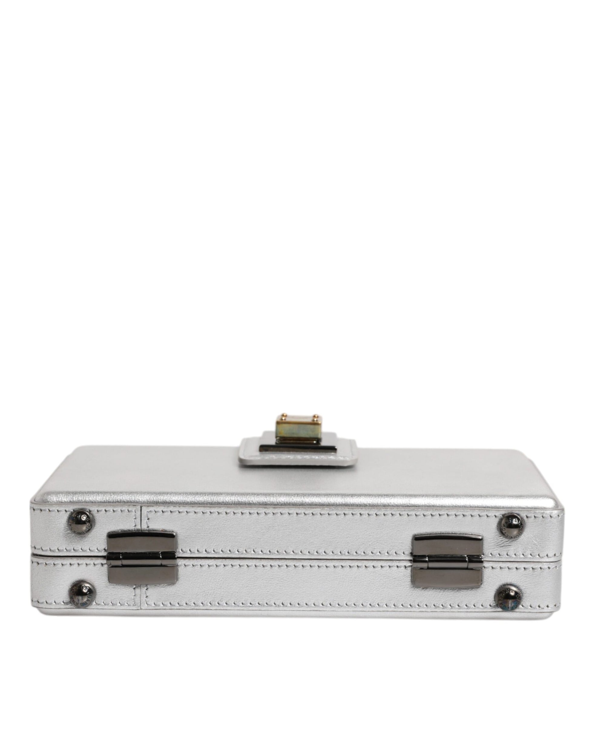 Dolce & Gabbana Metallic Silver DG BOX Leather Shoulder Strap Bag