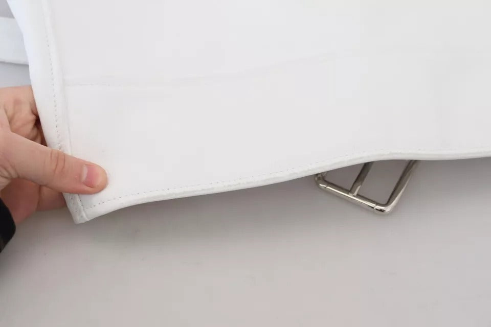 Dolce & Gabbana White Leather Biker Coat Zipper Jacket