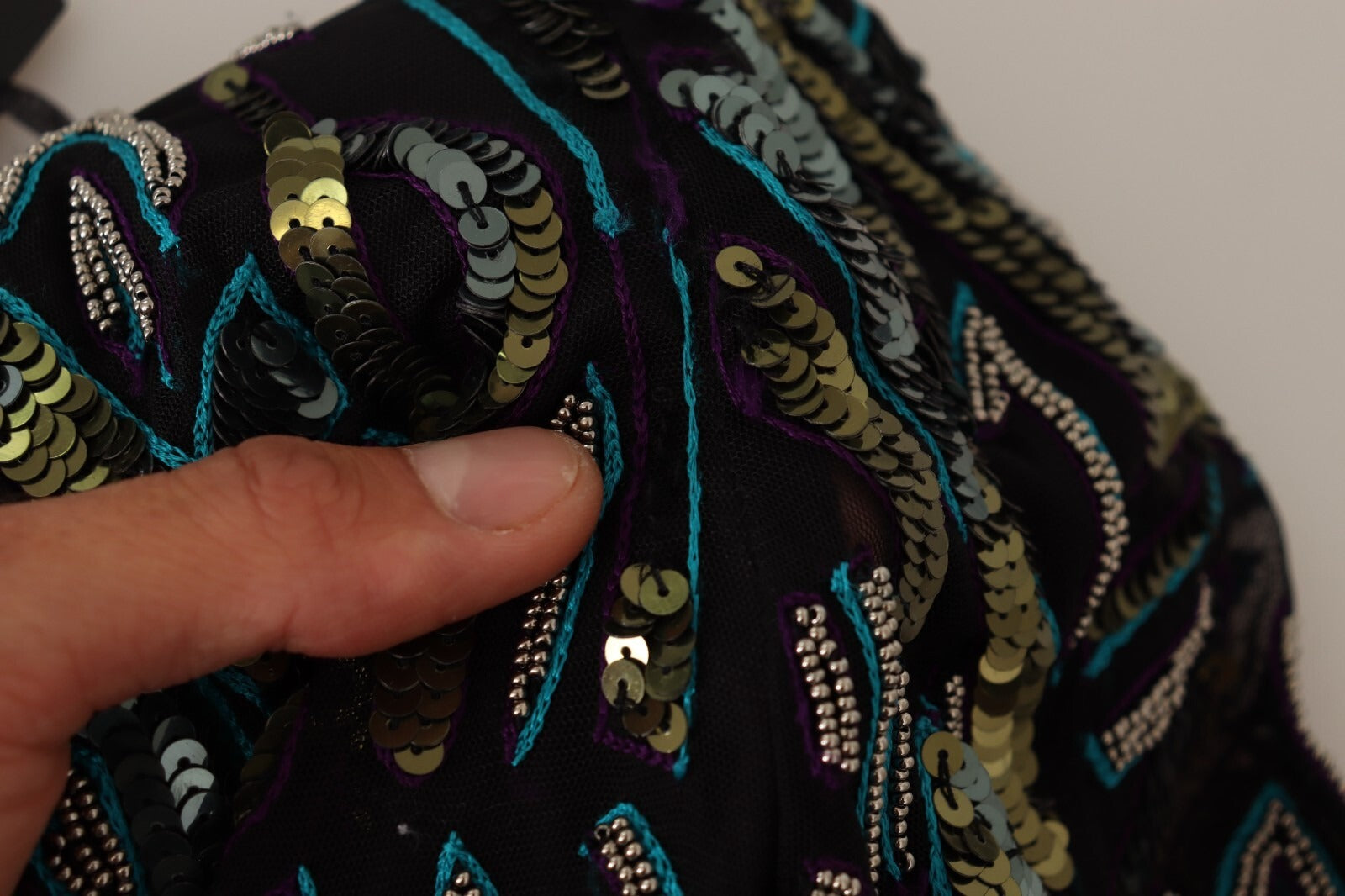 This item has minor defect, it has a missing sequins decor (see pictures for details).